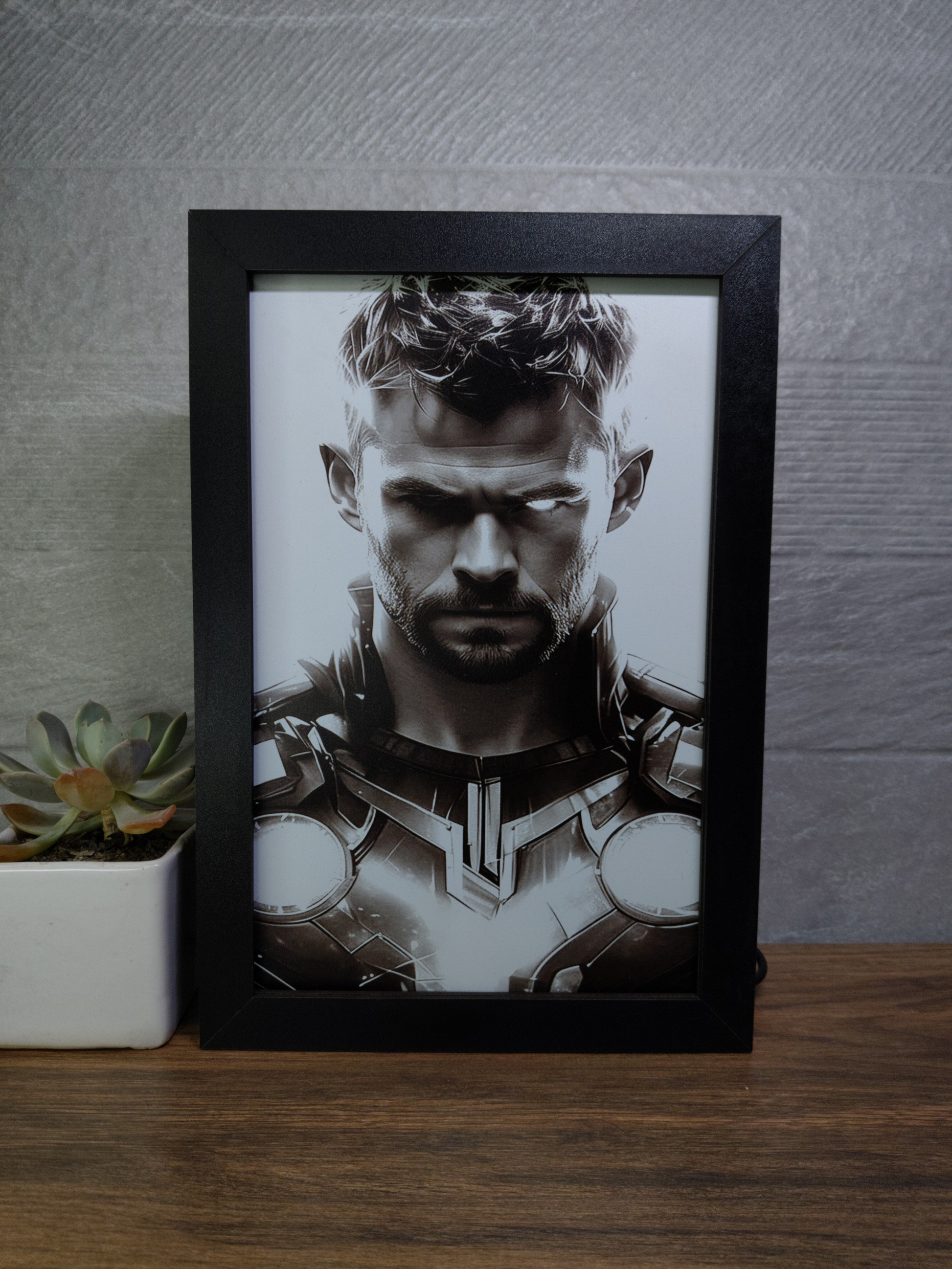 Unleash the might and charisma of the God of Thunder with this striking 4D LED Light Frame. Designed for true superhero fans, this masterpiece blends cinematic brilliance with premium craftsmanship.